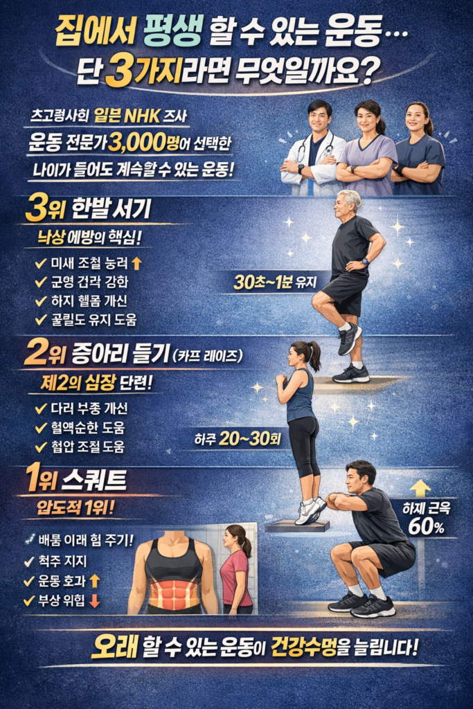 μΌλ³Έ 곡μλ°©μ‘ NHKκ° λ¬Όλ¦¬μΉλ£μ¬, 건κ°μ΄λμ§λμ¬, μ€ν¬μΈ νΈλ μ΄λ λ± μ΄λ μ λ¬Έκ° 3000λͺ μ λμμΌλ‘ μ€λ¬Έμ‘°μ¬λ₯Ό μ€μν΄, βμ§μμ νμ ν μ μλ μ΄λβ ν±3λ₯Ό λ½μ κ²μ΄λ€.