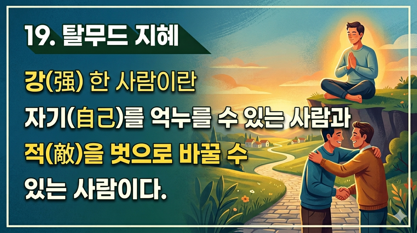 19 : 강(强) 한 사람이란 자기(自己)를 억누를 수 있는 사람과 적(敵)을 벗으로 바꿀 수 있는 사람이다.