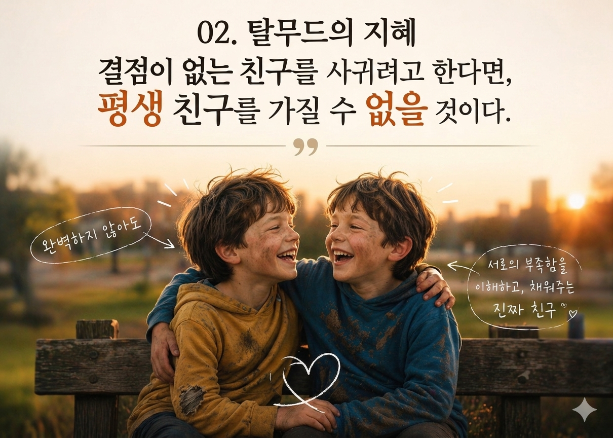 02 : 결점(缺點)이 없는 친구를 사귀려고 한다면 평생(平生) 친구를 가질 수 없을 것이다.