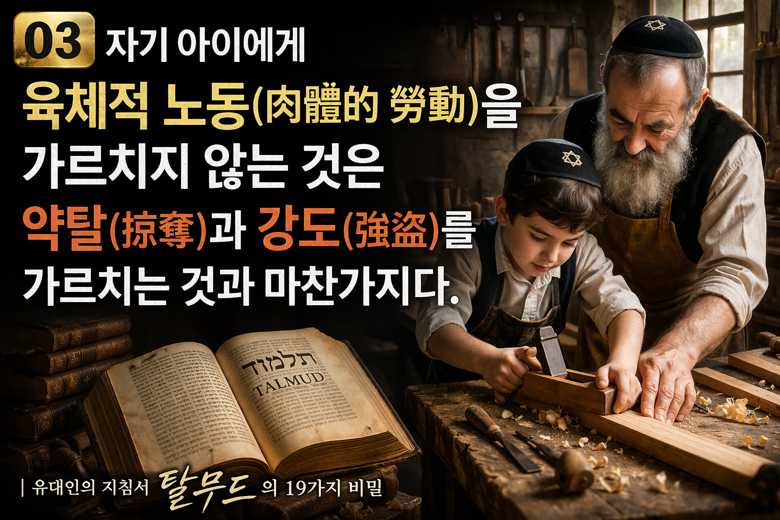 03 : 자기 아이에게 육체적 노동(肉體的 勞動)을 가르치지 않는 것은 약탈(掠奪)과 강도(强盜)를 가르치는 것과 마찬가지다.