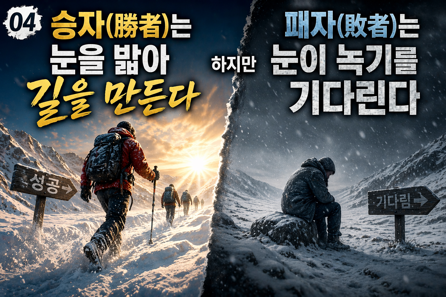 04 : 승자(勝者)는 눈을 밟아 길을 만들지만 패자(敗者)는 눈이 녹기를 기다린다.