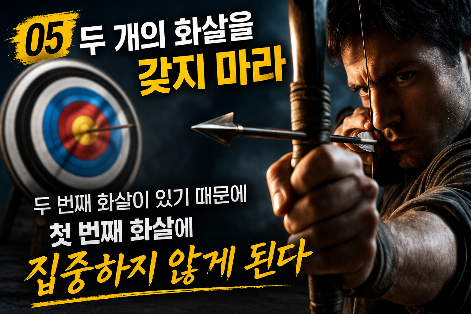 05 : 두 개의 화살을 갖지 마라 두 번째 화살이 있기 때문에 첫 번째 화살에 집중(集中) 하지 않게 된다.